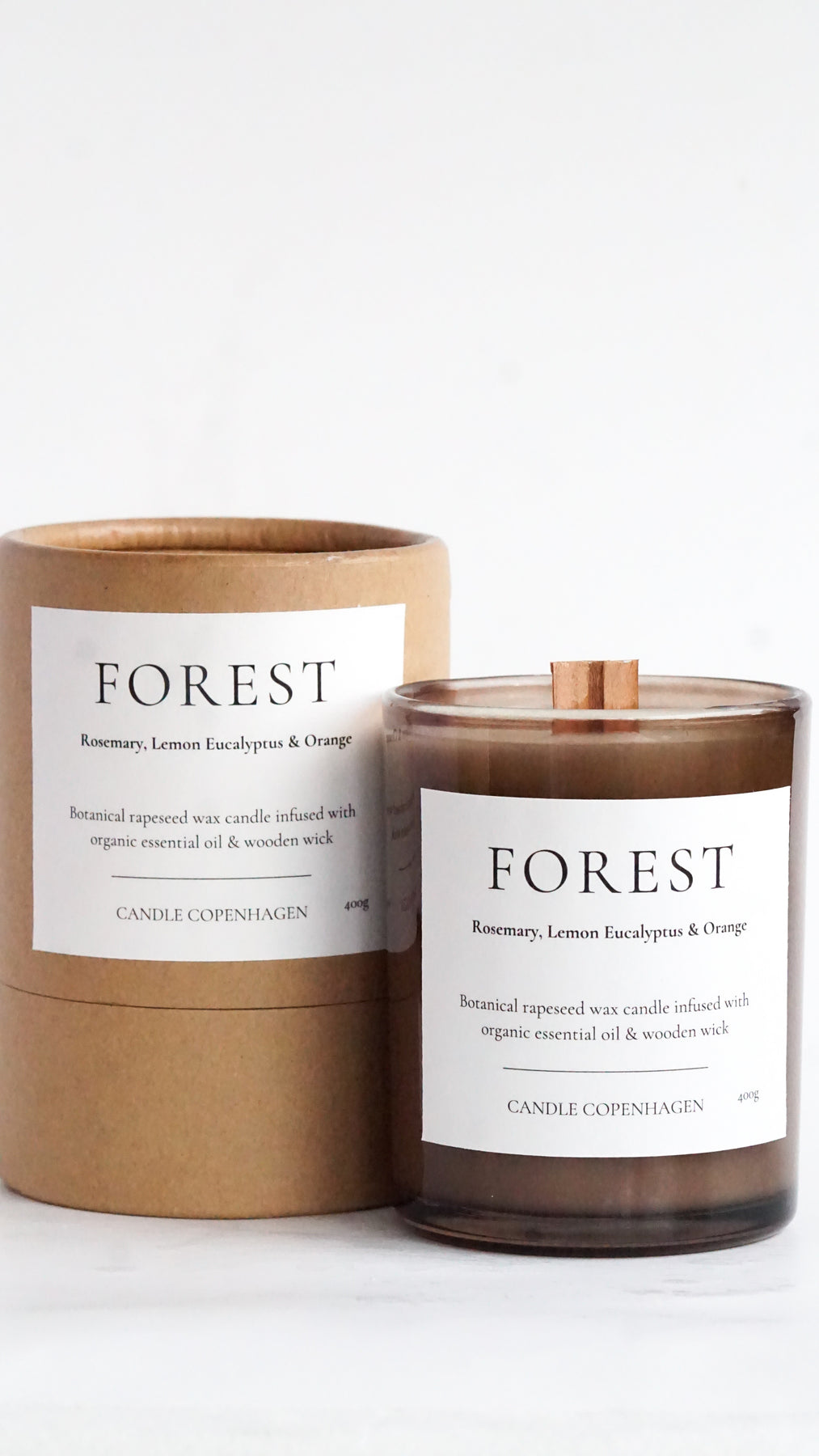 For at fuldende oplevelsen er lyset lavet med en FSC-certificeret trævæge. Trævægens stille knitrende lyd skaber en hyggelig, meditativ stemning, som gør lyset til mere end bare en duft – det bliver et lille øjeblik af ro.