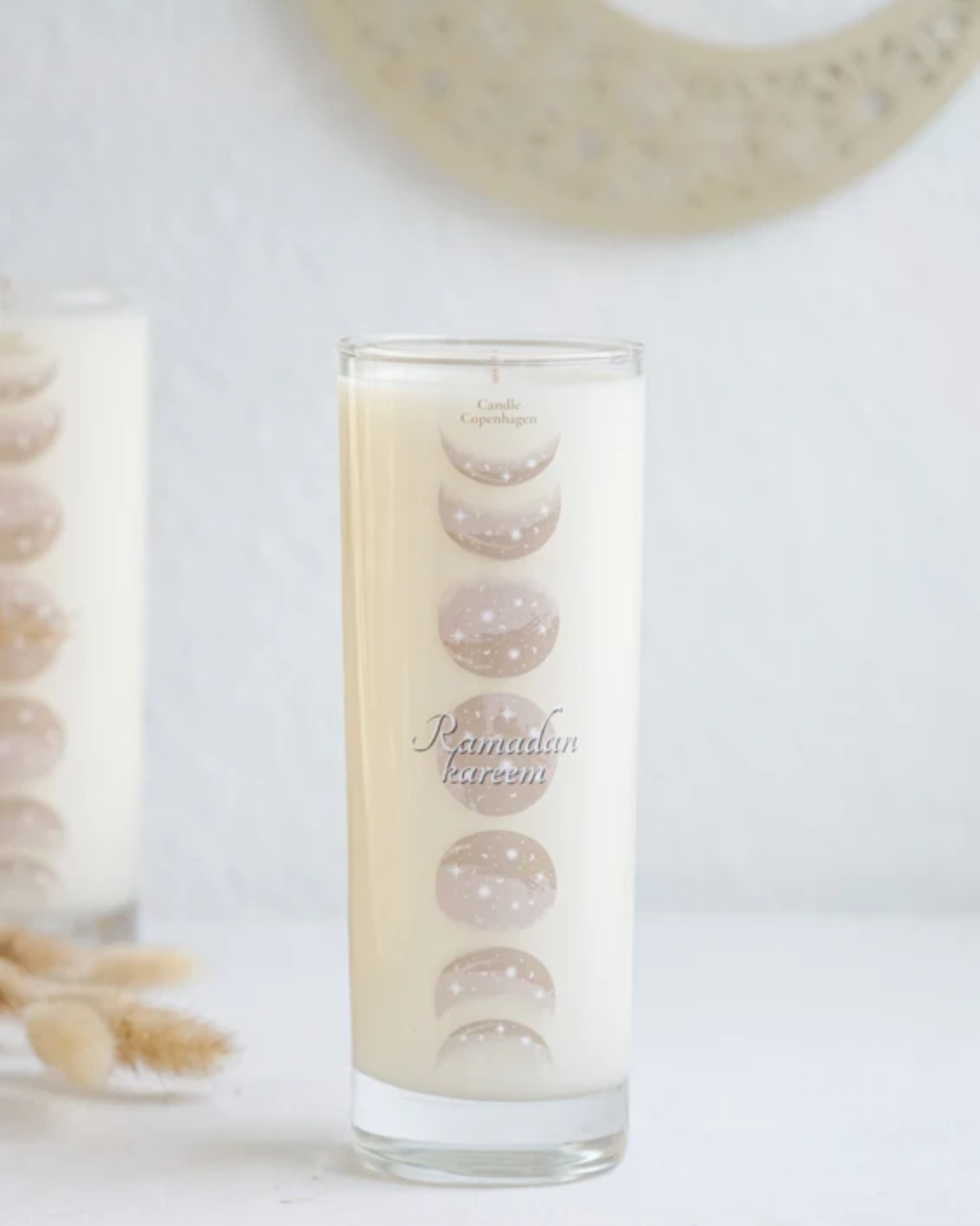 Oplev Ramadanens spirituelle rejse med vores unikke lys i glas, designet med månens faser, så du kan følge dens cyklus gennem den hellige måned. Hvert lys er håndlavet af 100 % naturlig sojavoks med en økologisk væge, der sikrer en ren og rolig forbrænding.